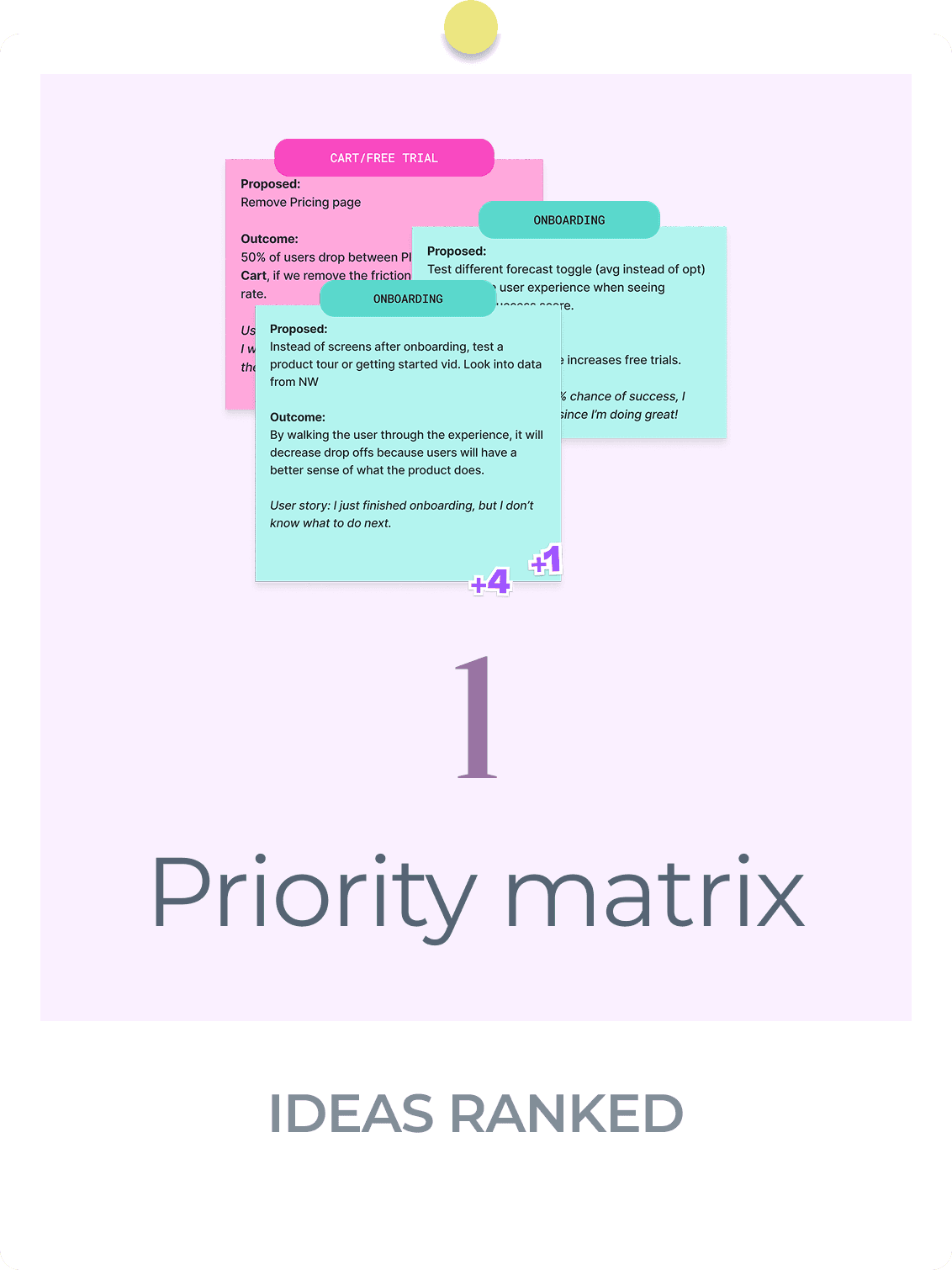 After the workshops, we had a few ideas on what to do. We wanted to start small and validate the hypothesis: it's not an onboarding issue, it's that users don't know where to go next.